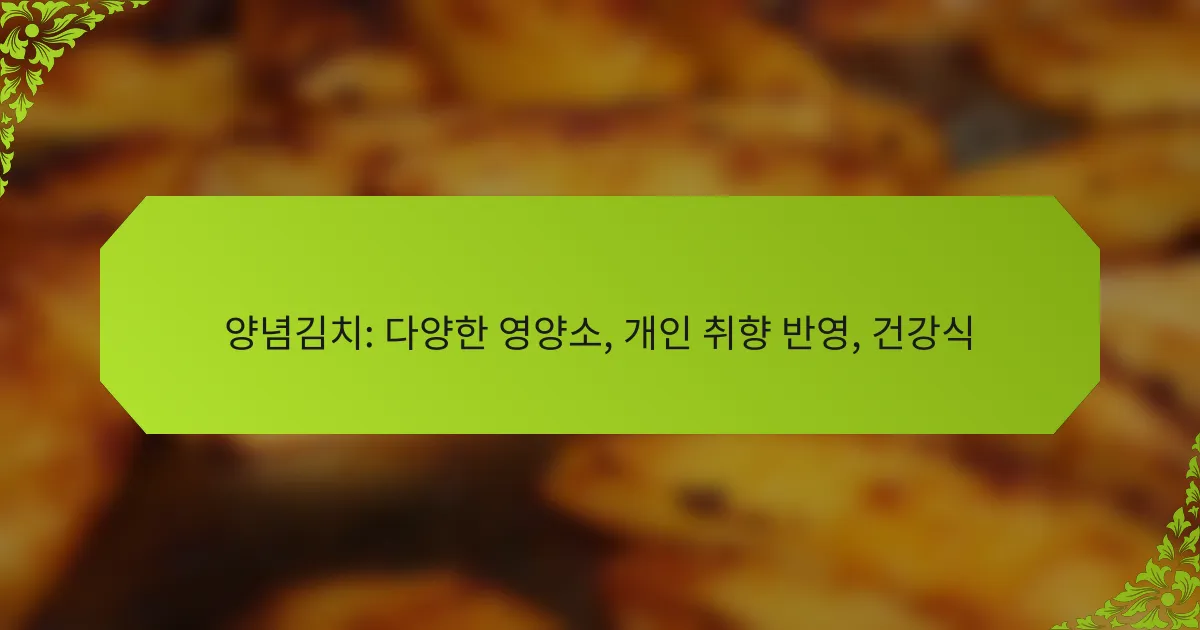 양념김치는 개인의 취향에 따라 다양한 방법으로 조절할 수 있습니다. 각자의 입맛에 맞는 양념의 조합과 재료 선택이 중요하며, 이를 통해 건강한 맛을 즐길 수 있습니다.